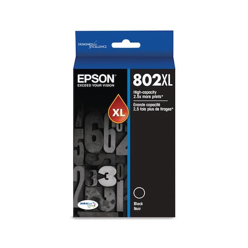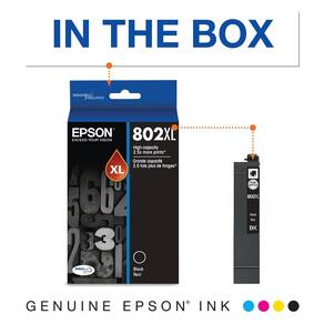 EPSON Cartucho preto de alta capacidade DURABrite Ultra Ink 802 (T802XL120-S) Funciona com WorkForce Pro WF-4720, WF-4730, WF-4734, WF-4740 - Manuseio sem preocupações – impressões resistentes a manchas, desbotamento e água - Cartuchos de tinta individuais convenientes