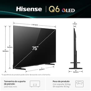 Smart TV Hisense QLED 4K 75" 75Q6QV com Processador AI Dolby Vision HDR10+ HLG Filmmaker Mode Dolby Gaming Dolby Atmos Alexa e Google