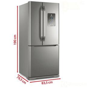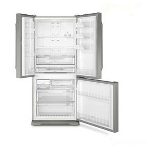 Características Tipo: French Door (Freezer Invertido) Quantidade de Portas: 3 Frost Free Painel Eletrônico Prateleiras: 03 prateleiras internas no refrigerador, 04 prateleiras em cada contra porta do refrigerador e 02 prateleiras na contra porta do freezer Alarme de Porta Aberta Função Gelo Rápido Degelo Automático Controle de Temperatura para Bebidas Gavetas: 04 Pés Niveladores