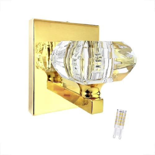 Descrição: - materiais: metal e cristal k9. - dimensões do cristal cxlxa : 7 cm x 7 cm x 4 cm - dimensões da base: Altura: 12 cm Largura: 10 cm Profundidade: 2 cm - profundidade total da arandela: 10 cm