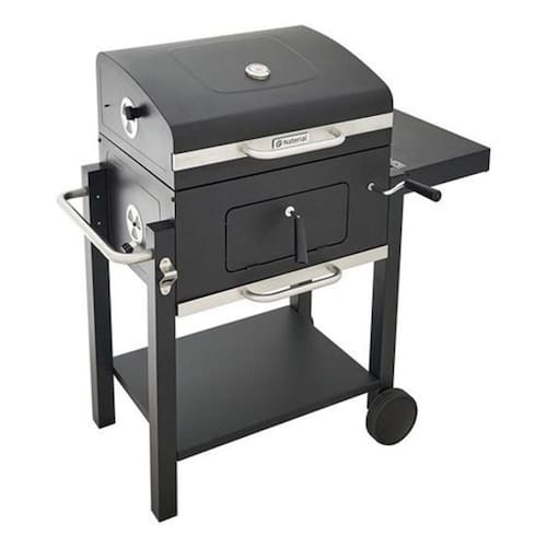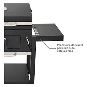 Cozimento Uniforme: A tampa restringe a circulacao de oxigenio, garantindo altas temperaturas constantes e mantendo a fumaca concentrada para um sabor defumado unico. Praticidade no Preparo: Com prateleiras dobraveis e compartimento inferior, voce tera espaco para preparar, temperar e organizar todos os ingredientes e acessorios. Versatilidade: Duas grelhas permitem diferentes tecnicas de cozimento. Utilize a grelha inferior para chamas diretas e a superior para defumacao suave ou para manter os alimentos aquecidos. Controle de Temperatura: A saida de ar ajustavel e o termometro embutido garantem a precisao na oxigenacao e no monitoramento da temperatura. Reabastecimento Seguro: A portinhola frontal facilita a reposicao de carvao sem interromper o processo de cozimento, garantindo maior seguranca e praticidade. Especificacoes Tecnicas
