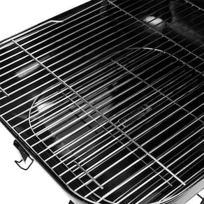Explore o prazer de grelhar com esta churrasqueira movel a carvao, ideal para uso externo. Com dimensoes de 91 cm de altura, 70 cm de largura e profundidade, esta unidade oferece portabilidade e facilidade de uso. Construida em metal resistente, possui uma tonalidade elegante preta e uma estrutura robusta de aco. Inclui uma tampa de metal na mesma tonalidade, que ajuda a controlar o calor, embora nao possua termometro ou controle de temperatura.