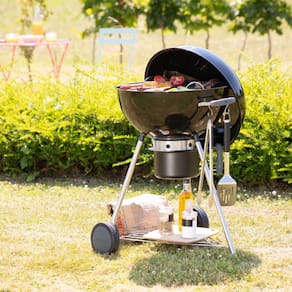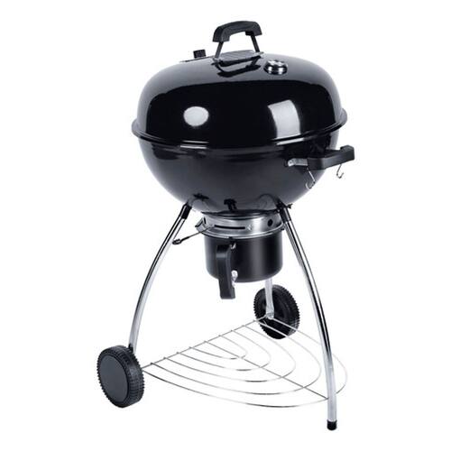 Esta churrasqueira movel a bafo e ideal para uso externo, proporcionando uma experiencia unica em churrascos feitos a carvao. Com dimensoes de 106x66x64.5 cm, e fabricada em aco resistente na cor preta, garantindo durabilidade e facilidade na manutencao. Acompanha uma tampa tambem em aco, que ajuda a manter o calor, otimizando o cozimento dos alimentos. Este modelo possui termometro integrado para monitoramento preciso da temperatura, facilitando o controle do cozimento. Inclui duas rodas que facilitam a movimentacao, perfeitas para ajustar a posicao da churrasqueira com facilidade em diferentes espacos externos. Nao acompanha espetos, mas vem com uma grelha de 54x54 cm, tambem em aco, que proporciona uma ampla area para grelhar diversos tipos de alimentos simultaneamente. As alcas externas em metal garantem seguranca e praticidade ao movimentar a churrasqueira. Este produto e entregue desmontado e possui uma garantia de 36 meses, assegurando qualidade e satisfacao no uso prolongado.