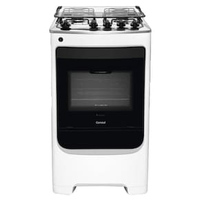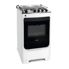 Informações Adicionais: Capacidade do forno: 58 litros Alimentação: Gás principal (visão frontal): Branco Tipo de gás: GLP (Conversível para GN) Queimadores: 1 grande, 3 médios Trempes: Arame redondo Tampão de vidro Serigrafia no tampão Luz no forno Acabamento da mesa: Inox Funcionamento:Gás Acendimento: Automático Válvula corta-gás tipo de trempe: dupla Plugue e Tomada: 10A