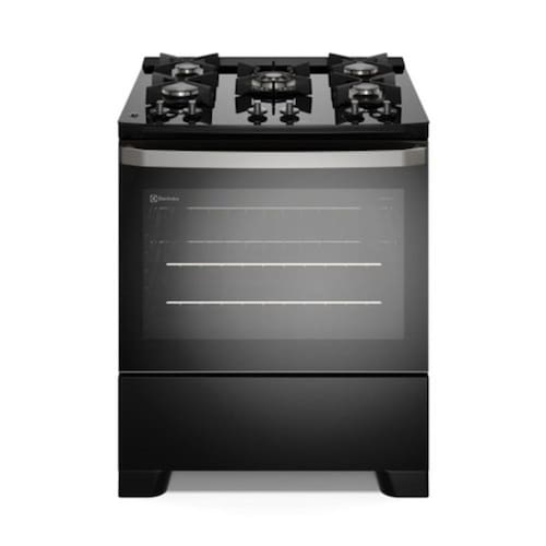 O Fogão 5 Bocas Electrolux Efficient Mesa de Vidro, PerfectCook e Grades de Ferro (FE5GB) foi pensado para tornar o dia a dia na cozinha mais prático, mas sem deixar de lado a qualidade e o sabor dos alimentos. O forno do Fogão 5 bocas Electrolux Preto Efficient Mesa de Vidro, PerfectCook e Grades de Ferro (FE5GB) tem a função PerfetCook, que possui cavidade selada e faz os alimentos serem assados por igual, deixando suas receitas muito mais saborosas. Isso acontece porque essa cavidade tem um isolamento térmico e cantos arredondados, que ajudam a reter a temperatura internamente. Além de deixar os alimentos mais suculentos, reduz o tempo de cozimento em até 18. Na parte de cima do fogão, as Trempes de Ferro Fundido dão mais estabilidade para as panelas durante o preparo. Você também pode aproveitar todo o poder do vapor em suas receitas com a exclusiva tecnologia VaporBake, que cozinha a vapor e deixa suas receitas com até 2x mais textura e crocância. Além de cozinhar, você pode usar a função Regenerar a Vapor para reaquecer os alimentos, recuperando o sabor e o aroma autênticos, sem ressecá-los. A função Tripla Chama é para quem procura agilidade nos preparos do dia a dia e precisão para as receitas mais elaboradas. Ela tem potência máxima para um cozimento mais rápido e deixa os alimentos muito mais homogêneos e saborosos. Para usá-la, você conta com o Acendimento Automático, que é rápido e seguro. A parte de cima do fogão ainda tem uma Mesa de Vidro Temperado, que, além do design moderno, é resistente e oferece praticidade na limpeza.