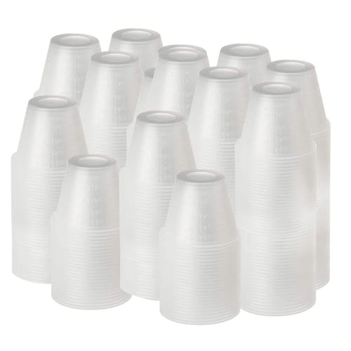 — Copo de remédio de 5000 ct (estojo completo) de 1 onça (30 ml) feito de polipropileno forte com medidas fáceis de ler (50 mangas, 100 xícaras por manga) — O tamanho da caixa mede 18" x 10" x 10". Perfeito para misturar quantidades pequenas e precisas de líquido com medidas laboratoriais fáceis de ler