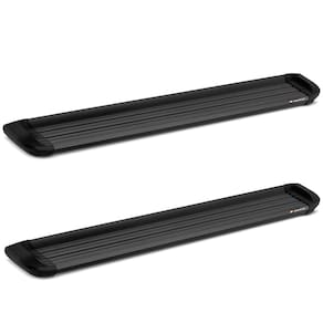 Especificações Técnicas: Fabricado em Aluminio Design elegante e moderno Suportes de fixação fabricados em aço carbono Ponteiras e soleiras em polipropileno na cor preta Comprimento total com ponteiras: 202 cm Não realiza furos para fixação Espessura: 2 mm Largura total da plataforma: 18 cm Acabamento em Inox Preto Capacidade de até 150 kg na subida ou descida