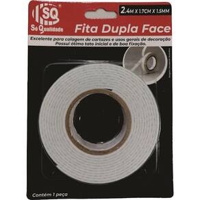 // Fita Adesiva EVA Dupla Face 2,4m x 1,7cm x 1,5mm SQ3540 Fita Adesiva Dupla Face2,4m x 1,7cm x 1,5mm Modo de Uso:- Limpe e seque a superfície antes de colar a fita;- Corte-a na medida necessária e cole na superfície;- Certifique-se de que esteja bem fixada antes de tirar a película branca;- Em seguida, cole o objeto desejado. Ideal para a fixação de cartazes, enfeites, arranjos, montagens, usos gerais para decoração. Possui ótimo tato inicial e de boa fixação. Recomendações:- Guarde em local seguro;- Mantenha fora do alcance de crianças. atacado Nautfix