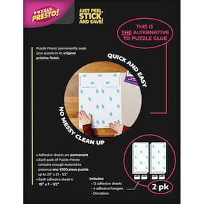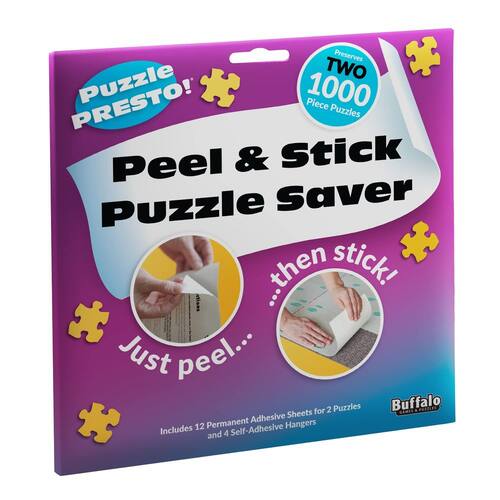 (Pacote com 2) Puzzle Presto! Peel & Stick Puzzle Saver: a maneira autêntico e ainda a melhor de preservar seu quebra-cabeça finalizado! 12 folhas adesivas e 4 hangares adesivos. Preserve quebra-cabeças de duas mil peças! Multi
