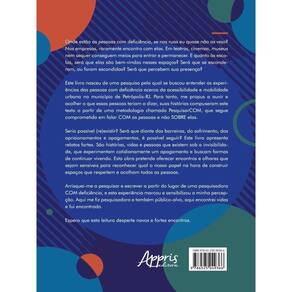 Onde estão as pessoas com deficiência, se nas ruas eu quase não as vejo? Nas empresas, raramente encontro com elas. Em teatros, cinemas, museus nem sequer conseguem meios para entrar e permanecer. E quanto às escolas, será que elas são bem-vindas nesses espaços? Será que se esconderam, ou foram escondidas? Será que percebem sua presença? Este livro nasceu de uma pesquisa pela qual se buscou entender as experiências das pessoas com deficiência acerca da acessibilidade e mobilidade urbana no município de Petrópolis-RJ. Para tanto, me propus a ouvir e acolher o que essas pessoas teriam a dizer, suas histórias compuseram este texto a partir de uma metodologia chamada PesquisarCOM, que segue comprometida em falar COM as pessoas e não SOBRE elas. Seria possível (re)existir? Será que diante das barreiras, do sofrimento, dos aprisionamentos e apagamentos, é possível seguir? Este livro apresenta relatos fortes. São histórias, vidas e pessoas que existem sob a invisibilidade, que experimentam cotidianamente um apagamento e buscam formas de continuar vivendo. Esta obra pretende oferecer encontros e olhares que sejam sensíveis para reconhecer qual o nosso papel na hora de construir espaços que respeitem e acolham todas as pessoas. Arrisquei-me a pesquisar e escrever a partir do lugar de uma pesquisadora COM deficiência, e esta experiência marcou e sensibilizou a minha percepção. Aqui me fiz pesquisadora e também público-alvo, aqui encontrei vidas e fui encontrada. Espero que esta leitura desperte novos e fortes encontros.