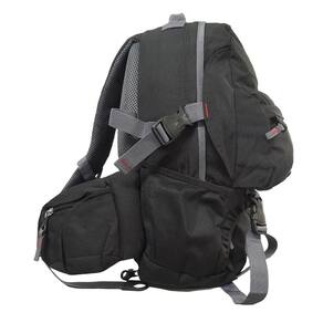 Mochila de Uso Misto, podendo ser usada em atividades ao ar livre e na cidade. Possui amplo bolso frontal e acesso ao interior por cima e também pelo fundo. Bolsos laterais em tela para levar cantis e/ou roupas molhadas e bolsinhos na barrigueira para coisas pequenas. Alças externas permitem amarrar o isolante térmico, capacete etc. Vem com capa de chuva embutida