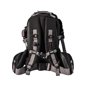 Mochila de Uso Misto, podendo ser usada em atividades ao ar livre e na cidade. Possui amplo bolso frontal e acesso ao interior por cima e também pelo fundo. Bolsos laterais em tela para levar cantis e/ou roupas molhadas e bolsinhos na barrigueira para coisas pequenas. Alças externas permitem amarrar o isolante térmico, capacete etc. Vem com capa de chuva embutida
