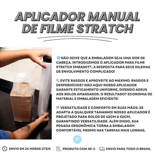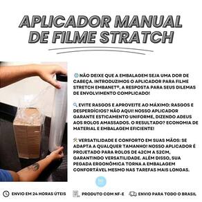 Ideal para Empresas e Residências: Seja para embalar produtos na sua empresa ou organizar a mudança da sua casa, nosso Aplicador para Filme Stretch é o parceiro perfeito que atende a todas as suas necessidades de embalagem. Vai da mudança ao empacotamento profissional - fácil e eficaz
