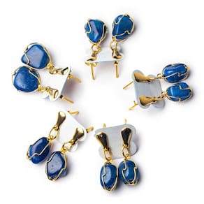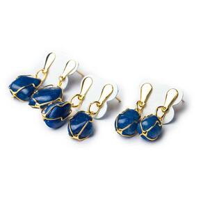 Este brinco combina os tons suaves e elegantes da Ágata Azul rolada e polida com um design chique: um delicado cesto amarradinho artesanal, montado manualmente. Um acessório com presença leve e sofisticada, ideal para quem busca estilo com tranquilidade, proteção suave e boas vibrações. A base metálica recebe acabamento douradosobre metal niquelado, criando um contraste delicado que valoriza os tons azulados e translúcidos característicos dessa pedra natural. Detalhes da Peça