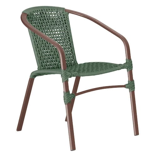 01 Cadeira Floripa Aluminio Pintura Marrom Trama Verde