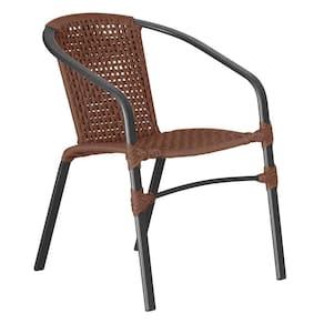 01 Cadeira Floripa Alumínio Pintura Preta Trama Marrom