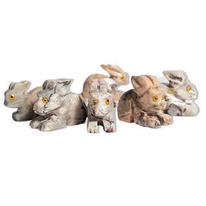 Decore seu espaço com nossos coelhos de dolomita! Essa peça traz paz e equilíbrio ao ambiente. Ideal para quem busca harmonia e estilo na decoração. Adicione agora um toque de tranquilidade e beleza à sua casa agora mesmo! CARACTERISTICAS DA(S) PEDRAS: NOME DA(S) PEDRA(S):Dolomita COR DA(S) PEDRA(S): Vide Foto CORTE DA(S) PEDRA(S): Lapidado (artesanato manual) CLARIDADE DA(S) PEDRA(S): Denso (brilho de verniz) MEDIDAS APROXIMADAS DA(S) PEDRA(S): 38 x 36mm aproximadamente PESO APROXIMADO DA(S) PEDRA: 20g Origem - Cristais de Curvelo Propriedades da dolomita: A dolomita é uma pedra associada à paz, equilíbrio e renovação. Suas propriedades energéticas ajudam a aliviar o dores emocionais temporárias, promovendo a tranquilidade e o relaxamento profundo. Além disso, é conhecida por fortalecer a mente e o corpo, ajudando na absorção de cálcio e no equilíbrio do sistema nervoso. A dolomita também é utilizada para harmonizar o ambiente, trazendo uma sensação de segurança e estabilidade, sendo ideal para meditações e práticas de autocuidado. Por ser pedra natural podem apresentar variações em suas tonalidades e grafismos. Há também a possibilidade de ocorrerem pequenas inclusões que irão se assemelhar a fissuras, mas que são normais de minerais autentico de garimpo. Hidratação oleo mineral. So compre apos ler e entender isso! Marca: CristaisdeCurvelo