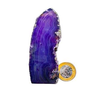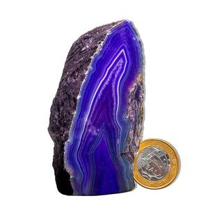 Ágata Lilás – Pedra Natural de Qualidade para Decoração e Bem-Estar Transforme seu ambiente com a energia suave e acolhedora dos Geodos de Ágata Lilás. Perfeitas para decoração, práticas esotéricas e como um presente especial, essas pedras naturais trazem um toque único e harmonioso para sua casa ou espaço de trabalho. Características do Produto:\nNome: Ágata Lilás Tamanho das Pedras: Entre 7 a 12 cm (tamanhos podem variar conforme o estoque disponível) Cor: Lilás Peso Médio por Pedra: 150 a 200g Qualidade: Comum (ideal para quem busca pedras naturais com uma boa relação custo-benefício)\nDestaques:\nPedras Naturais: Cada geodo é uma peça única, extraída diretamente do garimpo, com formas e tonalidades exclusivas. As pedras podem apresentar pequenas inclusões, características que fazem delas ainda mais especiais e autênticas. Acabamento Polido e Base Serrada: A face da pedra é polida, e a base serrada garante que ela fique estável e possa ser facilmente exibida, seja em prateleiras, mesas ou como peça decorativa. Energia Positiva e Harmonia: Conhecida por suas propriedades de equilíbrio e tranquilidade, a Ágata Lilás é ideal para quem busca promover uma atmosfera serena e relaxante no ambiente. Variações Naturais: Como se trata de uma pedra natural, as cores, padrões e formatos podem variar, garantindo que cada peça seja única. Tratamento com Óleo Mineral: As pedras são cuidadosamente tratadas com óleo mineral para preservar seu brilho e beleza por mais tempo.\nImportante:\nO produto é 80% tingido, prática comum no mercado de Ágata para destacar suas cores naturais e garantir um visual encantador. As fotos são ilustrativas e podem variar conforme o lote e as características das pedras.\nPor que comprar conosco?\nProduto Único e Exclusivo: Ao adquirir um Geodo de Ágata Lilás, sua pessoa leva para casa uma peça única, repleta de charme e elegância natural. Qualidade e Preço Acessível: Oferecemos pedras de alta qualidade a preços justos, ideais para quem busca algo especial sem gastar muito. Comodidade na Compra: Entregamos rapidamente, garantindo que sua experiência de compra seja tranquila e satisfatória.\nTransforme Seu Espaço com a Beleza e Energia da Ágata Lilás! Compre Agora! Por que comprar na Distribuidora Cristais de Curvelo?\nCompromisso com o Meio Ambiente: Utilizamos embalagens recicláveis e biodegradáveis sempre que possível. Nossos processos seguem rigorosamente as normas ambientais, com práticas de sustentabilidade, como a reciclagem de água e aproveitamento de retalhos de pedras, buscando sempre reduzir o impacto ambiental. Marca: CristaisdeCurvelo