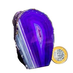 Ágata Lilás – Pedra Natural de Qualidade para Decoração e Bem-Estar Transforme seu espaço com a beleza única e a energia suave dos Geodos de Ágata Lilás. Essas pedras naturais são ideais para quem busca dar um toque especial à decoração da casa, ou para quem deseja utilizar em práticas esotéricas, trazendo equilíbrio e harmonia ao ambiente. Características do Produto:\nNome: Ágata Lilás Tamanho das Pedras: Entre 7 a 12 cm (tamanhos podem variar conforme o estoque disponível) Cor: Lilás Peso Médio por Pedra: 250 a 300g Qualidade: Comum (ideal para quem busca pedras naturais acessíveis com ótimo custo-benefício)\nDestaques:\nPedras Naturais: Cada geodo é uma peça única, extraída diretamente do garimpo, com tonalidades e formas exclusivas. As pedras podem apresentar pequenas inclusões, características que as tornam ainda mais autênticas. Acabamento Polido e Base Serrada: A face da pedra é polida, e a base serrada garante que a pedra fique firme e estável, perfeita para ser exibida em prateleiras ou mesas decorativas. Energia Positiva e Harmonia: A Ágata Lilás é conhecida por suas propriedades de equilíbrio emocional e tranquilidade, tornando-se uma excelente opção para quem busca um ambiente sereno e acolhedor. Variações Naturais: Como se trata de uma pedra natural, cada geodo apresenta padrões e cores diferentes, garantindo que cada peça seja única e exclusiva. Tratamento com Óleo Mineral: As pedras são tratadas com óleo mineral para manter seu brilho e beleza naturais por mais tempo.\nImportante:\nO produto é 80% tingido, uma prática comum no mercado de Ágata para realçar suas cores naturais. As fotos são ilustrativas e podem variar conforme o lote e as características das pedras.\nPor que comprar conosco?\nProduto Único e Exclusivo: Cada Geodo de Ágata Lilás é uma peça única, perfeita para decoração e para quem valoriza a energia das pedras naturais. Qualidade e Preço Justo: Oferecemos pedras naturais de qualidade com um preço acessível, ideal para quem deseja investir em itens exclusivos sem comprometer o orçamento. Entrega Rápida e Segura: Garantimos a entrega eficiente e a qualidade do produto, para que possa desfrutar de sua nova peça o mais rápido possível.\nCompre Agora e Traga Harmonia para o Seu Ambiente com Geodos de Ágata Lilás! Por que comprar na Distribuidora Cristais de Curvelo? \nCompromisso com o Meio Ambiente: Priorizamos a sustentabilidade, utilizando 90% de embalagem reciclável e grande parte biodegradável. Nossos garimpos seguem rigorosamente as normas ambientais estabelecidas pelas leis vigentes, assim como nossas lapidações. Além disso, adotamos práticas de reciclagem de água, aproveitamento de retalhos de pedras e uso de discos diamantados, com a meta de atingir 100% de reciclagem em nossos processos. Marca: CristaisdeCurvelo