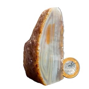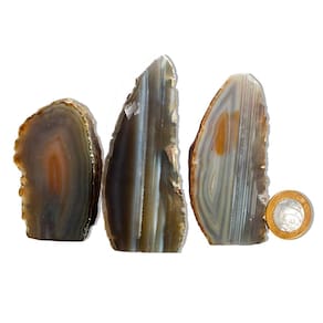 Ágata Natural – Pedra Natural de Qualidade para Decoração e Bem-Estar Transforme seu ambiente com a energia única e equilibrada dos Geodos de Ágata Natural. Perfeitas para decoração, práticas esotéricas e como um presente especial, essas pedras naturais trazem um toque único e harmonioso para sua casa ou espaço de trabalho. Características do Produto:\nNome: Ágata Natural Tamanho das Pedras: Entre 7 a 12 cm (tamanhos podem variar conforme o estoque disponível) Cor: Variedades naturais de cores, como tons de bege, cinza, marrom e preto, com variações de brilho e texturas. Peso Médio por Pedra: 150 a 200g Qualidade: Comum (ideal para quem busca pedras naturais autênticas com uma boa relação custo-benefício)\nDestaques:\nPedras Naturais: Cada geodo de Ágata Natural é uma peça única, extraída diretamente do garimpo, com formas e tonalidades exclusivas. As pedras podem apresentar pequenas inclusões, características que tornam cada peça ainda mais especial e autêntica. Acabamento Polido e Base Serrada: A face da pedra é polida para realçar seu brilho, e a base serrada garante que ela fique estável, podendo ser facilmente exibida, seja em prateleiras, mesas ou como peça decorativa. Energia Equilibrante e Protetora: A Ágata Natural é conhecida por suas propriedades de equilíbrio energético e proteção, sendo ideal para quem busca promover um ambiente harmonioso e energicamente equilibrado. Variações Naturais: Por ser uma pedra 100% natural, as cores, padrões e formatos podem variar, garantindo que cada peça seja única e exclusiva. Tratamento com Óleo Mineral: As pedras são tratadas com óleo mineral para preservar seu brilho e beleza naturais por mais tempo.\nImportante:\nTingimento Parcial: O produto pode ter até 80% de tingimento, prática comum no mercado de Ágata para realçar as cores naturais da pedra e garantir um visual encantador. Fotos Ilustrativas: As imagens são representativas e podem variar conforme o lote e as características individuais de cada pedra.\nPor que comprar conosco?\nProduto Único e Exclusivo: Ao adquirir um Geodo de Ágata Natural, você leva para casa uma peça única, cheia de charme e elegância natural. Qualidade e Preço Acessível: Oferecemos pedras naturais de alta qualidade a preços justos, ideais para quem busca algo especial sem comprometer o orçamento. Comodidade na Compra: Garantimos uma entrega rápida e eficiente, para que você possa aproveitar sua nova peça de decoração o quanto antes.\nTransforme Seu Espaço com a Beleza e Energia da Ágata Natural! Compre Agora! Esse é o anúncio alterado para a Ágata Natural, destacando suas características autênticas e energéticas. Caso precise de mais ajustes ou detalhes, estou à disposição!