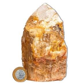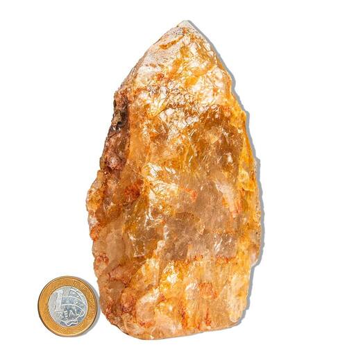 Hematoide Amarelo Bruto com Base Serrada – Pedra Natural para Decoração e Energia Revigorante. Descubra o magnetismo solar da Pedra Hematoide Amarelo Bruto, uma joia da natureza que combina beleza vibrante e presença energética marcante. Com tonalidades que oscilam entre o dourado, o âmbar e o amarelo intenso, essa pedra irradia calor, clareza e vitalidade, criando uma atmosfera acolhedora e revigorante em qualquer ambiente. Sua base serrada garante estabilidade para exposição vertical, ideal para composições decorativas que buscam um ponto de luz natural, energia positiva e sofisticação terrosa. Perfeita para quem valoriza peças com personalidade, cor e conexão energética autêntica. Dimensões e Peso Aproximado\nPeso por unidade: entre 700 a 900g Tamanho aproximado: 10 a 20cm\nHematoide Amarelo Bruto com Pé e Bico Serrado – Conexão com a Vitalidade Interior Uma pedra que irradia poder, energia e transformação. O Hematoide Amarelo Bruto com pé e bico serrado Tipo B não é apenas uma peça mineral: é um portal para o equilíbrio entre força, clareza mental e vitalidade emocional. Ideal para quem busca autenticidade na decoração, profundidade nas práticas espirituais e uma presença energética firme no ambiente. Propriedades Energéticas e Simbólicas O Hematoide Amarelo combina a energia estabilizadora da hematita com os tons vibrantes do quartzo amarelo, resultando em um cristal de poder incomparável. Reconhecido por fortalecer a mente, alinhar as emoções e promover a autoconfiança, ele é um excelente aliado na transmutação de energias densas e no desbloqueio dos centros energéticos. Atua especialmente sobre o chakra do plexo solar, fortalecendo a determinação e a vitalidade interna. Usos Sugeridos Esta peça é extremamente versátil: pode ser usada como elemento de destaque em decoração consciente, em altares pessoais, em práticas meditativas voltadas ao foco e à coragem, ou como ferramenta energética em terapias holísticas como o Reiki, a cristaloterapia e a harmonização de ambientes. Também é uma escolha marcante para colecionadores de minerais que apreciam a beleza da natureza em estado bruto. Curiosidade e Valorização Conhecido também como "Fire Quartz" (Quartzo Fogo), o Hematoide é tradicionalmente ligado a culturas que valorizam a união entre força de ação e clareza de pensamento. É considerado um cristal de ancoragem emocional, frequentemente utilizado por praticantes de meditação ativa e técnicas de empoderamento pessoal. Classificação por Qualidade\nTipo A – Qualidade superior: cores mais intensas, menos inclusões, forma bem definida, excelente para fins estéticos e espirituais exigentes. Tipo B – Qualidade intermediária: tonalidade variada, pequenas imperfeições naturais, ideal para terapias, uso pessoal e decorações rústicas. Tipo C – Qualidade econômica: mais rústico e com maior grau de variação visual.\nInformações Técnicas\nAcabamento: base (pé) e ponta (bico) serradas manualmente para melhor estabilidade e apresentação\nSobre Variações Naturais Por se tratar de uma pedra natural bruta, cada peça é absolutamente única. Variações de cor, forma, textura e microfissuras fazem parte do charme autêntico de um mineral não industrializado, refletindo sua origem e jornada geológica. Essas particularidades não comprometem a beleza nem a função energética da pedra — pelo contrário, as tornam ainda mais especiais. Tratamentos e Cuidados Esta peça pode receber hidratação com óleo mineral para realce visual e proteção superficial. A lapidação do pé e bico é realizada artesanalmente, respeitando as características naturais da matéria-prima. Sustentabilidade e Compromisso Ambiental<