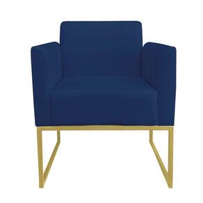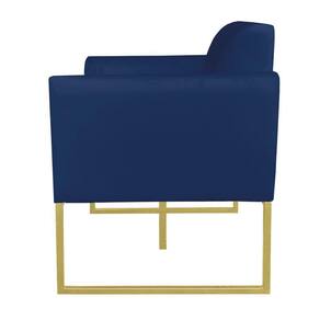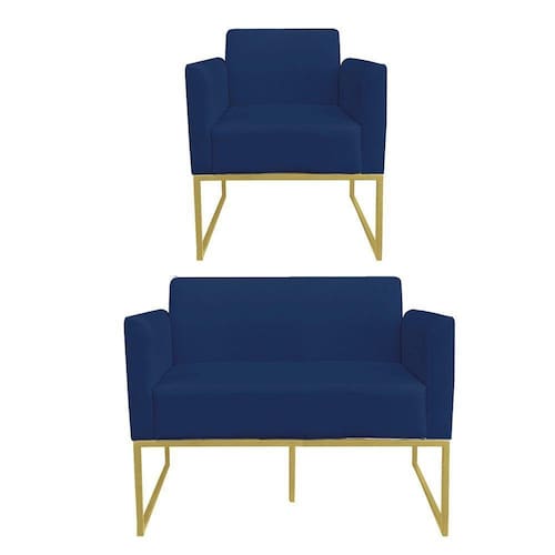 Kit 01 Namoradeira E 01 Poltrona Marisa Suede Base Industrial Metálica Dourado Drossi -azul Marinho