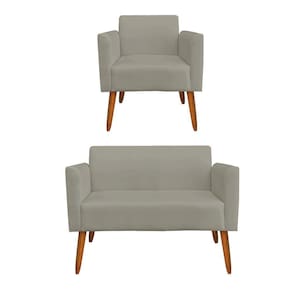 Kit 01 Namoradeira e 01 Poltrona Marisa Suede Pés Palito Castanho D'Rossi