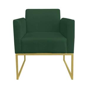 Kit 01 Namoradeira E 01 Poltrona Marisa Suede Base Industrial Metálica Dourado Drossi -verde