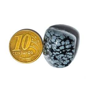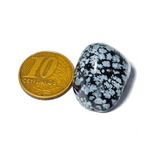 Obsidiana Flocos de Neve Rolada 30–45mm | Pedra Natural Importada Pedra autêntica e importada dos EUA, formada por lava vulcânica resfriada com água e sílica. A Obsidiana Flocos de Neve possui aparência marcante com fundo preto e cristais brancos que lembram neve. Ideal para colecionadores, decoração energética, artesanato ou uso esotérico.
