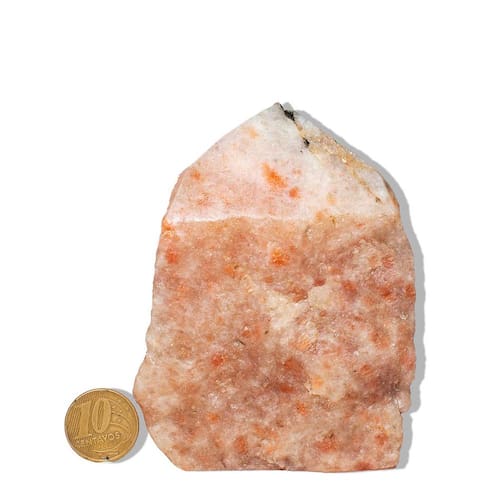 Nome: Pedra do Sol Natural (Gold Stone) Cor: Laranja vibrante com pigmentos vermelhos cintilantes Corte: Pé e Bico Polido Claridade: Vitral, sem transparência, ideal para Decorações Medidas: 8 a 11cm (varia conforme o estoque) Peso: 400 a 500g (varia conforme o estoque) Origem: Lapidação em Curvelo, MG; pedra de garimpo natural