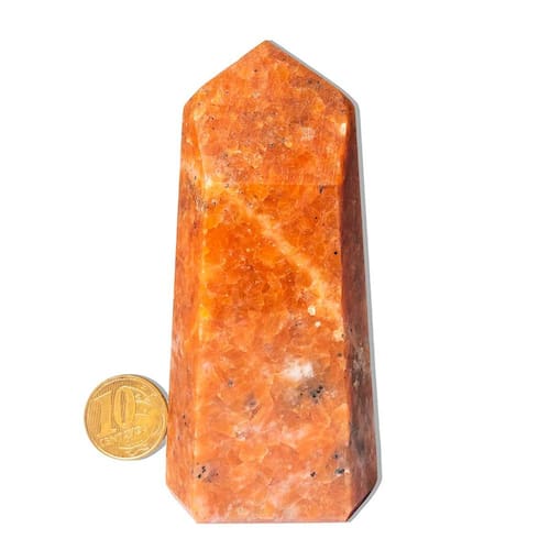 Ponta de Pedra Calcita Laranja - Energia Vibrante e Beleza Natural para Sua Decoração Descubra a magia da Calcita Laranja! Com suas cores intensas e vibrantes, a ponta de pedra calcita laranja é perfeita para decorar qualquer ambiente, trazendo energia positiva, criatividade e bem-estar. Transforme sua casa ou escritório com essa pedra única e aproveite seus benefícios espirituais e energéticos. Características do Produto:\nNome da Pedra: Calcita Laranja\nCor da Pedra: Laranja vibrante (Foto ilustrativa)\nCorte: Ponta Sextavada (gerador)\nClaridade: Densa e brilhante, com qualidade superior\nTamanho da Pedra: 9 a 10cm\nPeso: 200 a 250g (Pode Variar)\nOrigem: Brasil\nCuidados: Hidratação com óleo mineral para manter o brilho\nPor Que Escolher a Calcita Laranja? A Calcita Laranja é uma pedra natural fascinante que combina beleza e benefícios espirituais. Sua cor laranja intensa é resultado da presença de minerais como ferro, tornando-a não apenas um item de decoração, mas também uma aliada poderosa para quem busca equilíbrio emocional, motivação e bem-estar. Benefícios Energéticos e Espirituais:\nAumenta a criatividade e motivação: Perfeita para quem precisa de um impulso de energia para alcançar seus objetivos.\nEquilíbrio emocional: Associada ao chakra sacral, ajuda a restaurar o equilíbrio das emoções, proporcionando uma sensação de paz e harmonia.\nCura espiritual: Excelente para meditação, visualização e fortalecimento da intuição, permitindo um crescimento pessoal profundo.\nDecoração e estilo: Além de seus benefícios energéticos, a Calcita Laranja traz um toque único de beleza natural para qualquer espaço.\nA Calcita Laranja na Sua Casa ou Escritório Com seu formato elegante e cores vibrantes, a Calcita Laranja é ideal para decoração de interiores. Coloque-a em sua mesa, prateleira ou estante, e ela será um ponto de energia que ilumina qualquer ambiente. Pode também ser utlizada em joalheria artesanal, proporcionando um toque sofisticado e cheio de energia positiva. Importante: Por ser uma pedra natural, a Calcita Laranja pode apresentar variações de tonalidade e pequenas inclusões, características típicas de minerais autênticos. Essas variações não afetam a beleza ou qualidade da pedra, mas a tornam ainda mais única. Garanta a Sua Calcita Laranja e Traga Mais Energia ao Seu Espaço! Não perca a oportunidade de adicionar essa beleza natural e energia positiva à sua vida. Clique aqui para comprar agora e experimente o poder da Calcita Laranja em sua decoração e no seu bem-estar. Por que comprar com a gente?\nProduto 100% natural e garantido.\nEntrega rápida e segura para todo o Brasil.\nAtendimento especializado para tirar suas dúvidas e ajudar na sua escolha.\nFAQ (Perguntas Frequentes): 1. A Calcita Laranja pode ser utilizada para meditação?Sim, a Calcita Laranja é ideal para práticas de meditação, estimulando a criatividade e o equilíbrio emocional, além de auxiliar no fortalecimento da intuição. 2. Como posso usar a Calcita Laranja na decoração?Coloque-a em mesas, estantes, ou como parte de uma coleção de cristais. Sua cor vibrante e formato sofisticado trazem energia positiva ao ambiente. 3. A Calcita Laranja substitui tratamentos médicos?Não, a Calcita Laranja pode ser um complemento valioso para o bem-estar emocional e espiritual, mas não substitui tratamentos médicos convencionais.