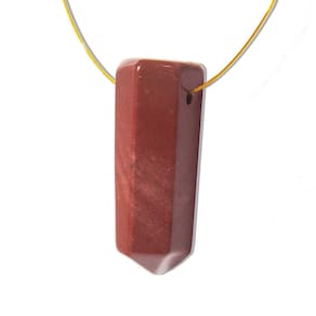 Pontinha de Jaspe Vermelho Lapidado com Furo Lateral para Montagem A pontinha de Jaspe Vermelho é uma pedra natural lapidada manualmente, com furo lateral de aproximadamente 1 mm. Essa peça é ideal para a montagem de colares, pulseiras e outros acessórios artesanais. Características do produto: