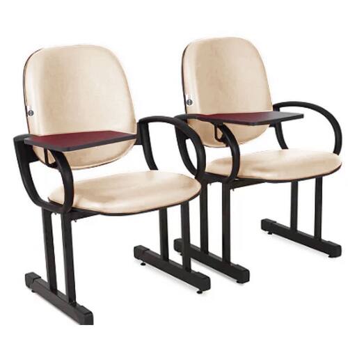 02 Cadeiras Escolar para Auditório e Escolas com Prancheta Linha Dallas Auditório Bege