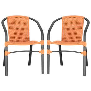 02 Cadeiras Floripa Alumínio Pintura Preta Trama Terra Cota