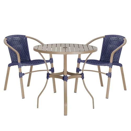 Composto por cadeiras de aluminio tramadas em corda nautica e uma elegante mesa com tampo ro, esse conjunto une sofisticacao e resistencia em cada detalhe.