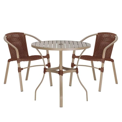 Composto por cadeiras de aluminio tramadas em corda nautica e uma elegante mesa com tampo ro, esse conjunto une sofisticacao e resistencia em cada detalhe.