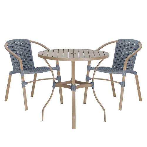 Composto por cadeiras de aluminio tramadas em corda nautica e uma elegante mesa com tampo ro, esse conjunto une sofisticacao e resistencia em cada detalhe.