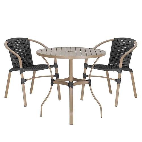 Composto por cadeiras de aluminio tramadas em corda nautica e uma elegante mesa com tampo ro, esse conjunto une sofisticacao e resistencia em cada detalhe.