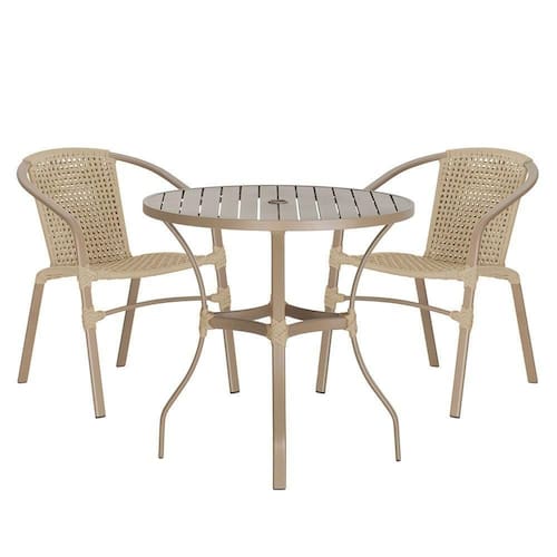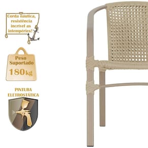 Composto por cadeiras de aluminio tramadas em corda nautica e uma elegante mesa com tampo ro, esse conjunto une sofisticacao e resistencia em cada detalhe.