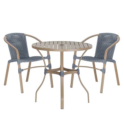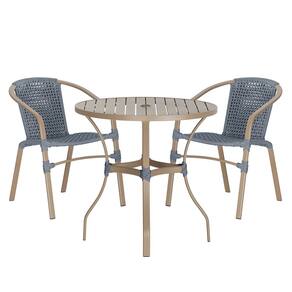 Composto por cadeiras de alumínio tramadas em corda náutica e uma elegante mesa com tampo ripado, esse conjunto une sofisticação e resistência em cada detalhe.