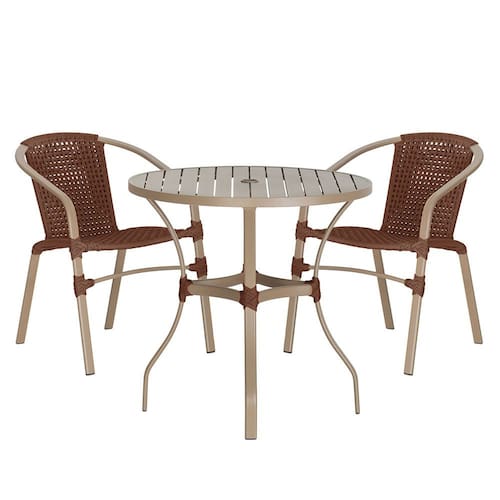 Composto por cadeiras de alumínio tramadas em corda náutica e uma elegante mesa com tampo ripado, esse conjunto une sofisticação e resistência em cada detalhe.