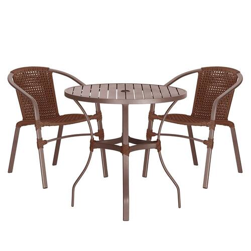 02 Cadeiras Floripa e Mesa Roma Trama - Marrom Chocolate