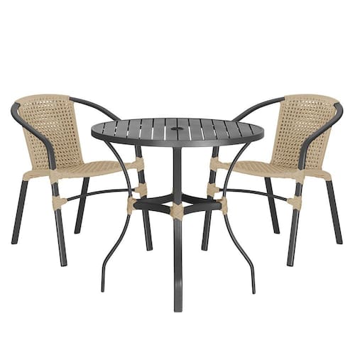Composto por cadeiras de alumínio tramadas em corda náutica e uma elegante mesa com tampo ripado, esse conjunto une sofisticação e resistência em cada detalhe.