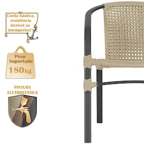 O trançado em corda náutica traz um charme artesanal e um toque acolhedor ao design moderno, criando o ambiente perfeito para momentos inesquecíveis ao ar livre.