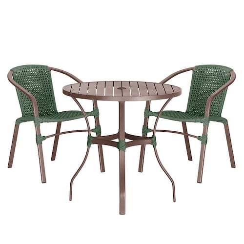 Composto por cadeiras de alumínio tramadas em corda náutica e uma elegante mesa com tampo ripado, esse conjunto une sofisticação e resistência em cada detalhe.