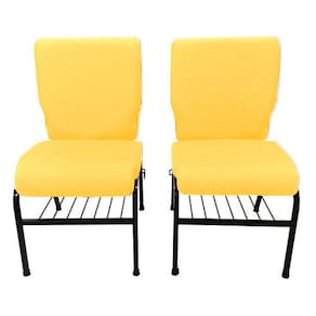 02 UNIDADES de Cadeiras para Igrejas com porta Bíblia e porta Cálice da Santa Ceia – Com Gancho lateral para acoplar em outra cadeira - Modelo Diretor – Linha Igreja – Cor: Amarelo - Tonalidade da Cor: Amarelo - Marca: Design Office Móveis As Cadeiras e Poltronas da marca Design Office Móveis, foram projetadas para proporcionar conforto e bem estar, tornando o dia-a-dia mais confortável. Utilizada para compor diversos tipos de ambientes a Linha Igreja da marca Design Office Móveis são modelos de cadeiras e poltronas para Igrejas, com medidas avantajadas, ergonômicas e confortáveis, que se diferenciam de modelos de cadeiras comuns existentes no mercado, de fabricação nacional com qualidade e garantia, direcionada para: Igrejas Evangélicas, Igrejas Católicas, Sinagogas, Auditórios, Escolas, Faculdades, ambientes corporativos e empresas de treinamento em geral. ESTE ANÚNCIO CONTEMPLA 02 (DUAS) UNIDADES DE CADEIRAS PARA IGREJAS. Cadeira fixa com porta livros, com porta cálice e engate lateral Características Assento: L50 x P44 cm Encosto: L50 x A48 cm Largura Total: 56cm Profundidade Total: 60cm Altura do Assento: 49cm Altura Total: 92 cm Peso: 11,5kg KIT com 02 Cadeiras para Igrejas Revestimento Assento e Encosto: Material Sintético Garantia: 12 Meses/1 ano cobrindo defeitos de fabricação. **Medidas e Cores aproximadas, podendo haver variações** Marca: Design Office Móveis OBSERVAÇÕES IMPORTANTES Ao receber a mercadoria efetuar a conferência. Produto entregue totalmente montado, sem a necessidade de qualquer montagem adicional, é só tirar da caixa e usar. Confira as dimensões do produto e certifique-se de que passará normalmente por elevadores, portas, escadas ou corredores de sua residência. As medidas descritas nesse anúncio são aproximadas podendo sofrer pequenas variações sendo maiores ou menores. As cores das fotos do produto são meramente ilustrativas, a tonalidade da cor pode sofrer alterações sendo mais clara ou mais escura.