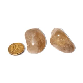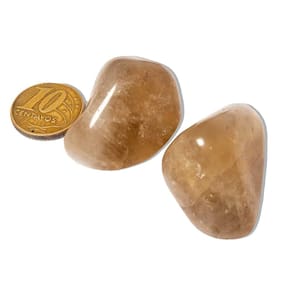 Conjunto com 2 pedras de Citrino Rolado (30 a 40mm), não bombardeado. Ideal para quem busca energizar ambientes, atrair prosperidade e otimizar práticas de meditação. Adquira agora e aproveite as propriedades únicas dessa pedra poderosa!