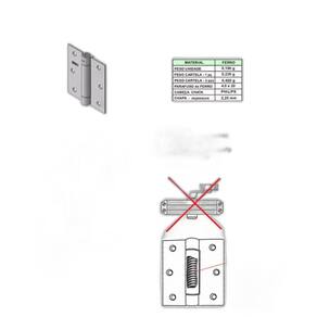 Dobradiça com Mola para fechamento automático suave das portas. Utilizada no lugar das molas aéreas funciona perfeitamente em portas pesadas e leves. Com uma mola interna de fácil regulagem da força de fechamento é super fácil de instalar, discreta mantendo a estética da porta e economiza espaço que uma mola aérea convencional ocupa. Características Medidas: 3.1/2 x 3 79 x 89mm Espessura: 2mm Material: Aço Acompanha Chave Allen para regulagem: Sim Capacidade de peso: 20 kg por dobradiça Dica Em portas de 2,10 de altura, mesmo pesando menor do que 60 kg o ideal é ser colocado 3 dobradiças para um bom funcionamento da mola Instruções para Instalação e regulagem 1 Encaixe a chave Allen na cavidade sextavada 2 Retire o Pino de Ajuste girando e pressionando a chave contra a dobradiça 3 Fixe a dobradiça de maneira convencional, depois de retirar o pino de ajuste 4 Com a porta fechada, encaixe novamente a chave allen na cavidade sextavada 5 Gire-a em sentido anti-horário, pressionando-a contra a dobradiça 6 Recoloque o pino de ajuste no orifício mais à esquerda 7 Cada orifício corresponde a uma pressão para fechar a porta. Quanto mais girar a chave a direita e colocar o pino a esquerda, maior será a pressão. ajuste da maneira necessária a sua necessidade