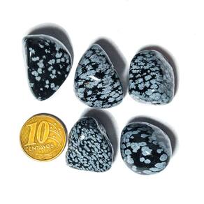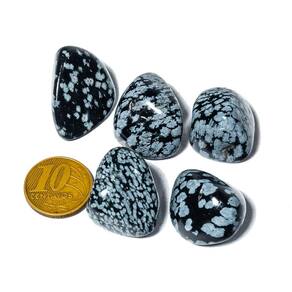 Obsidiana Flocos de Neve Rolada 30–45mm | Pedra Natural Importada Pedra autêntica e importada dos EUA, formada por lava vulcânica resfriada com água e sílica. A Obsidiana Flocos de Neve possui aparência marcante com fundo preto e cristais brancos que lembram neve. Ideal para colecionadores, decoração energética, artesanato ou uso esotérico.