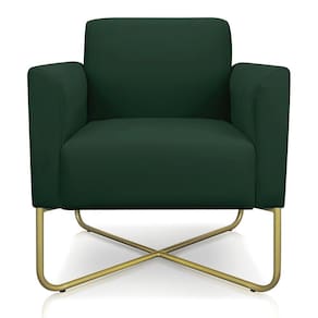 02 Poltronas Marisa Suede Verde Base X Industrial Dourada